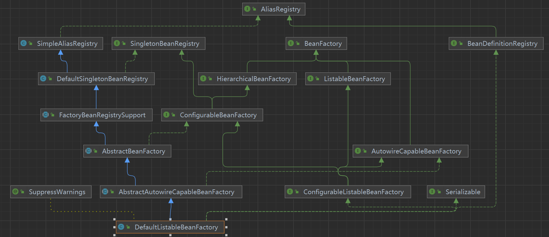 值得一提的是,BeanDefinitionReader是接口主要的实现类是XmlBeanDefinitionReader,而AnnotatedBeanDefinitionReader是单独的类,它没有实现BeanDefinitionReader接口