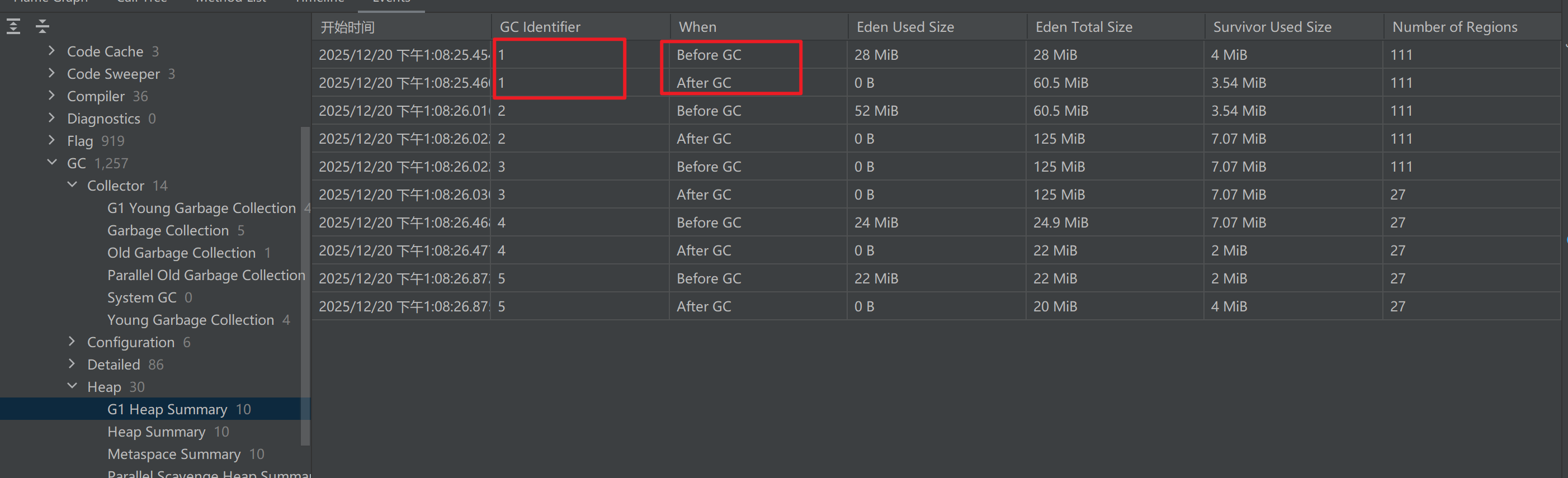 GC Identifier表示本次GC的ID,可以通过它查看GC前后的变化: