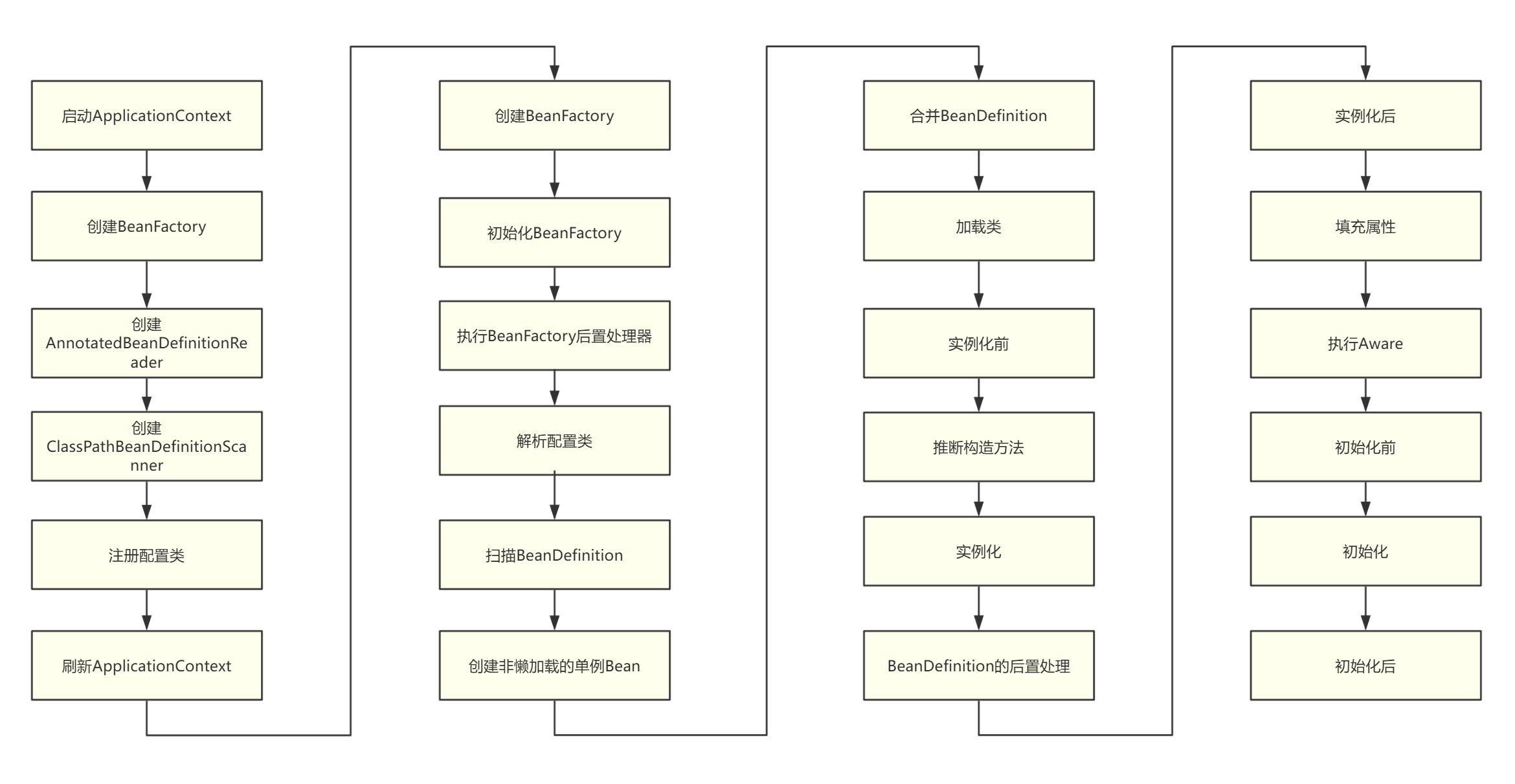 由此可见,Bean的生命周期之间的步骤还是非常多的,我们会分多篇文章完成学习。本文对于一些步骤不会深入分析其实源码实现,主要关注于扩展点和整个生命周期的一个大致流程。