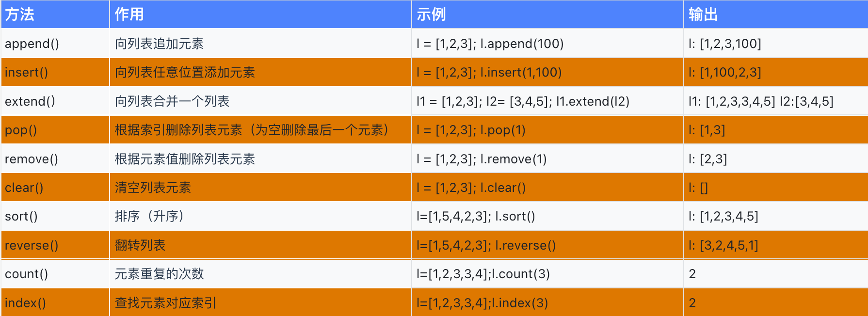 3. 列表的内置方法
